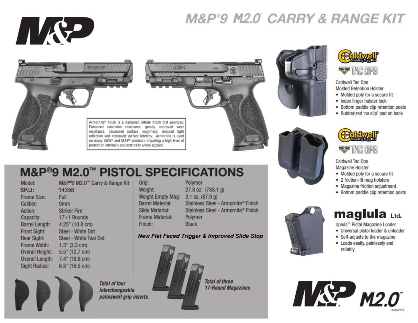 Pistola Smith & Wesson, modelo M&P9 OR M2.0 Kit, cañón 4,25”, calibre 9MM, 3 cargadores capacidad 17+1Rd